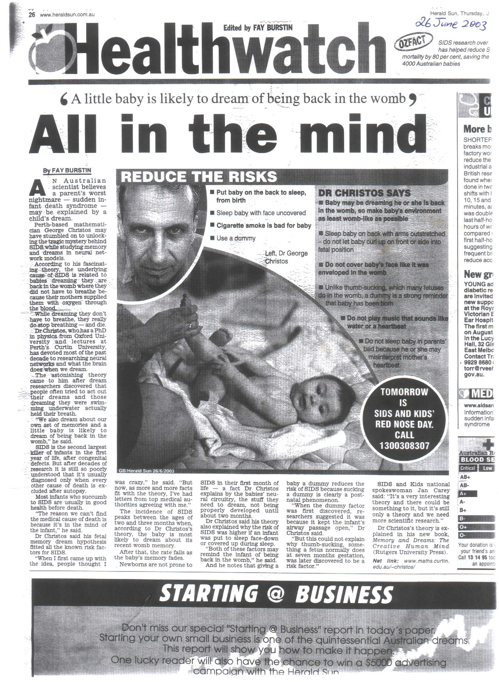 SIDS: "All in the mind", Herald Sun, Victoria, 26 June 2003 (jpg image)